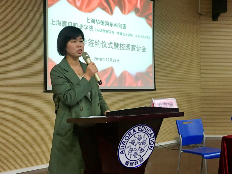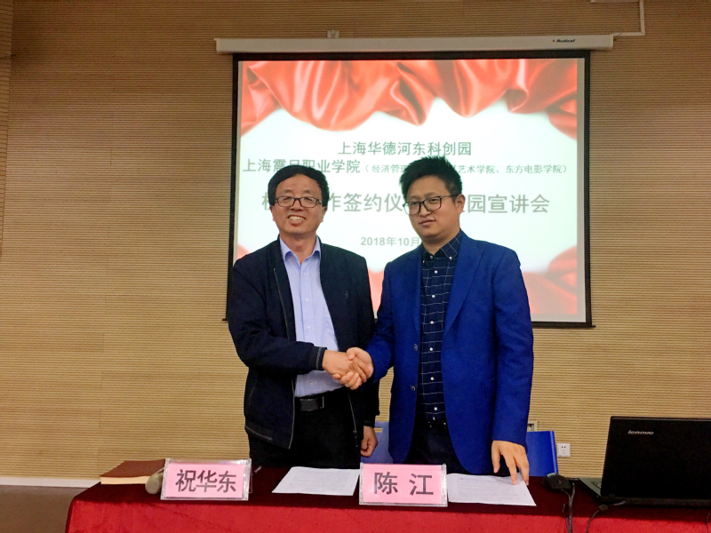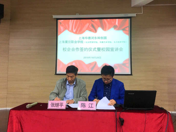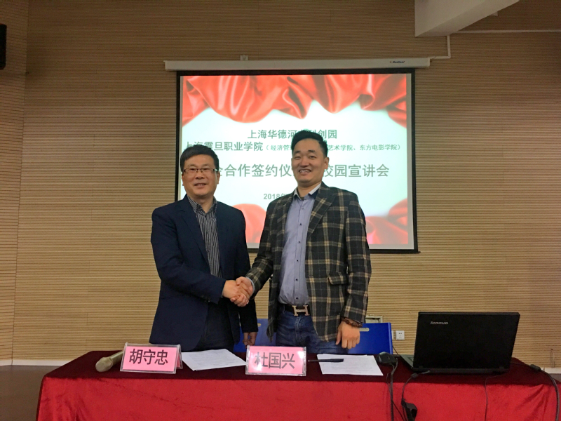 在简短的签约仪式结束后,上海华德科创园举办了一场校园宣讲会,介绍了企业的背景和目前的业务范围和本次招聘要求,并根据学生的意向选拔经济管理学院和传媒艺术学院的优秀毕业生进企业实习、就业。