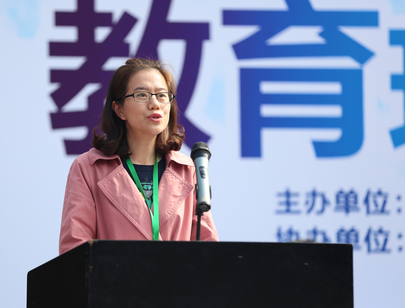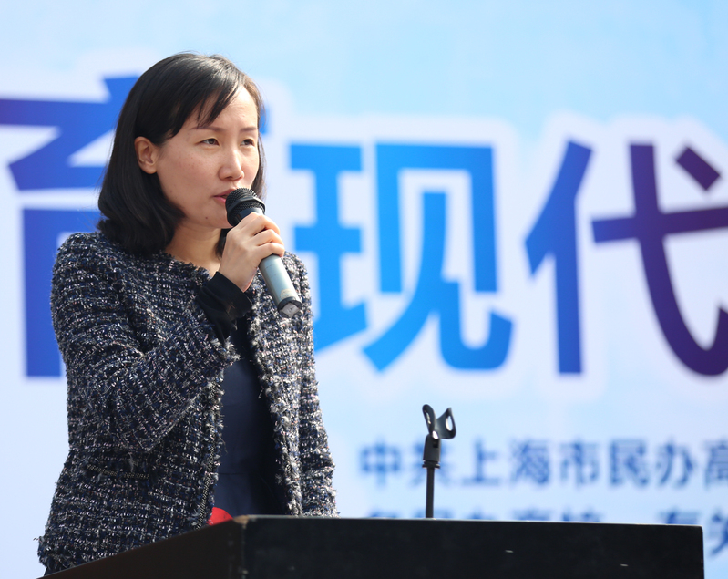震旦职业学院董事长张沈女士发表了热情洋溢的致辞,她首先对各位来宾出席本次大会表达最真挚的欢迎和感谢,对心理健康教育基地落成表示祝贺,对上海教委、上海民办高校党委把基地建设落实到震旦学院表示感谢,并对长三角心理健康教育一体化协作表达了良好的祝愿。