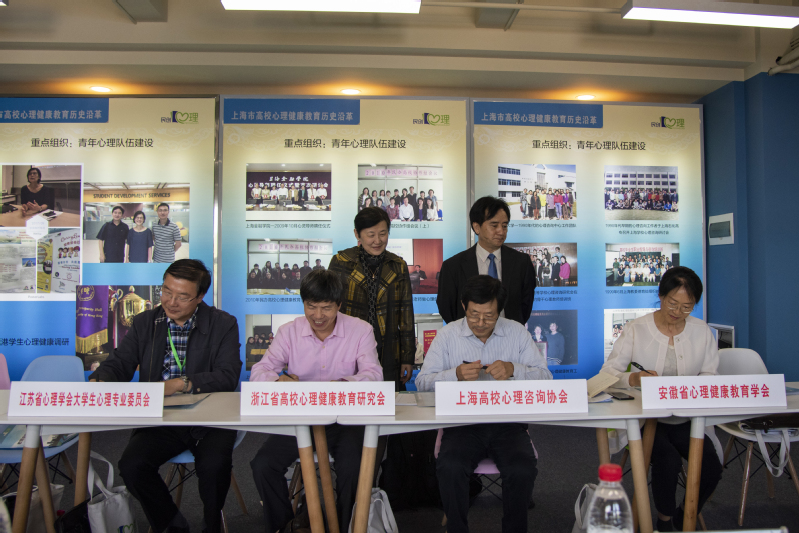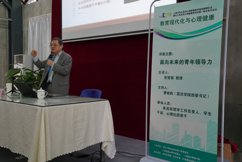 下午,大会分别召开专家研讨会和专家讲座,在专家研讨会上,上海民办高校心理健康教育基地负责人、震旦职业学院党委书记黄晞建与清华大学学生心理发展指导中心代表王旭主任助理、交通大学心理中心主任杨文圣教授签署合作协议,戴兆骏教授、马建青教授、陈增堂教授和孔燕教授共同签署了江浙沪皖三省一市“长三角高校心理健康教育发展一体化协作”协议。与会专家对基地建设和长三角高校心理健康教育的发展,大学生心理健康现状做了分析和展望。上海市领导科学学会副会长、上海中医药大学原党委书记张智强教授为各民办高校团学工作负责人、学生干部、心理社团骨干作了《面向未来的青年领导力》专题报告,并与学生进行了面对面的讨论。