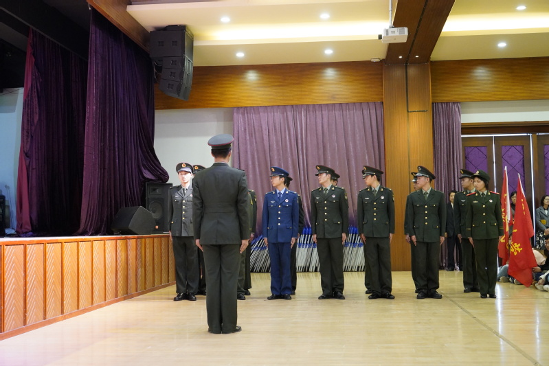 主持人徐磊老师宣布军训营开营式开始后,全体起立奏唱国歌。随后,夏臻副书记宣读了对本届军训营营长张超、副营长鹿群、教导员徐磊的任命书。随后,教官们向大家展示了基本的军事技能,步伐一致、整齐划一,学员们激动不已、掌声不断。值得一提的是,本届军训营教官均来自各学院的优秀退伍士兵,其中有多人在部队受到嘉奖。之后,由夏臻书记向军训营授旗,营长张超庄重地接过军旗并宣读连长名单和训练时间、地点。