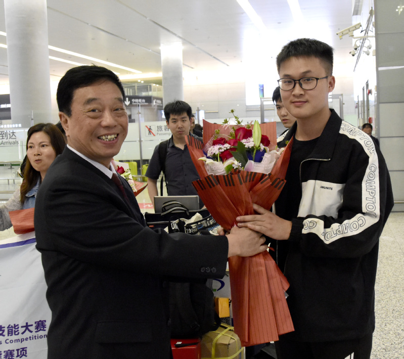 527日下午,我校获奖师生凯旋归来。校长陈力华、实践办主任叶素梅、机电工程学院副院长袁明、宣传部副部长金瑶等一行到机场迎接获奖师生。