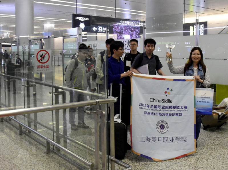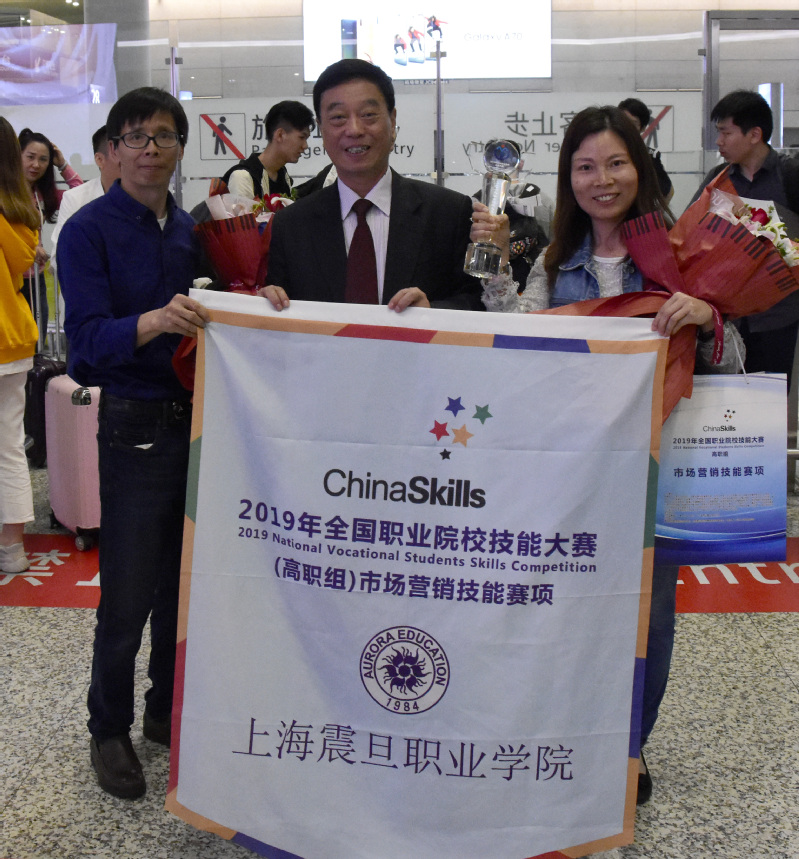 当获奖师生的身影出现在上海虹桥机场出口处时,现场响起热烈的掌声和欢呼声,陈校长手捧鲜花献给两位指导老师和四位获奖选手,并代表学校祝贺他们载誉而归,感谢他们的辛勤付出为学校和上海市职业教育带来了荣耀,大家都为震旦学院有这样优秀的老师和学生感到无比自豪!一分耕耘一分收获,荣誉的背后是奋斗的汗水,他们的成绩为大家树起了一面旗帜,是我校师生学习的楷模!