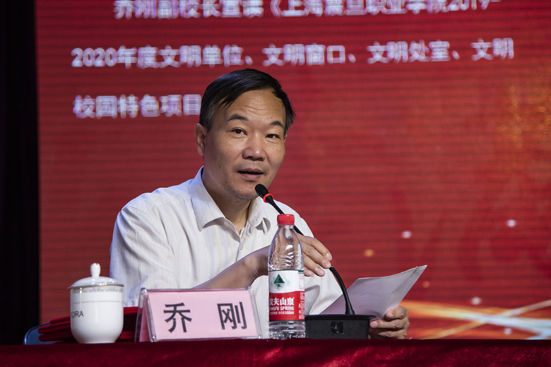 乔刚副校长宣读《星空游戏app安卓免费2019-2020年度文明单位、文明窗口、文明处室、文明校园特色项目的决定》
