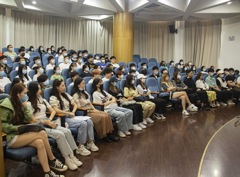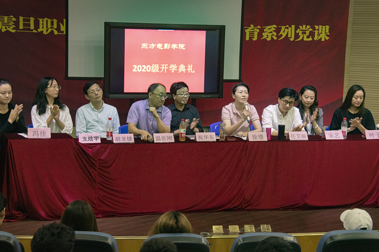 最后,学院常务副院长祝华东老师向2020级新生介绍了东方电影学院师资队伍、教学管理、专业特色及学院发展情况,他说,电影既是一种物质产品,又是一种精神产品,兼具审美功能和教育功能,从这个意义上讲电影工作者也是人类灵魂工程师。因此大家的专业选择非常有意义。他要求同学们心中有目标、做事有思想、行为有担当,用老师传授给的技能与精神去追求艺术和梦想,打牢专业基础,做好充分准备,迎接未来的挑战和开启美好的明天。
