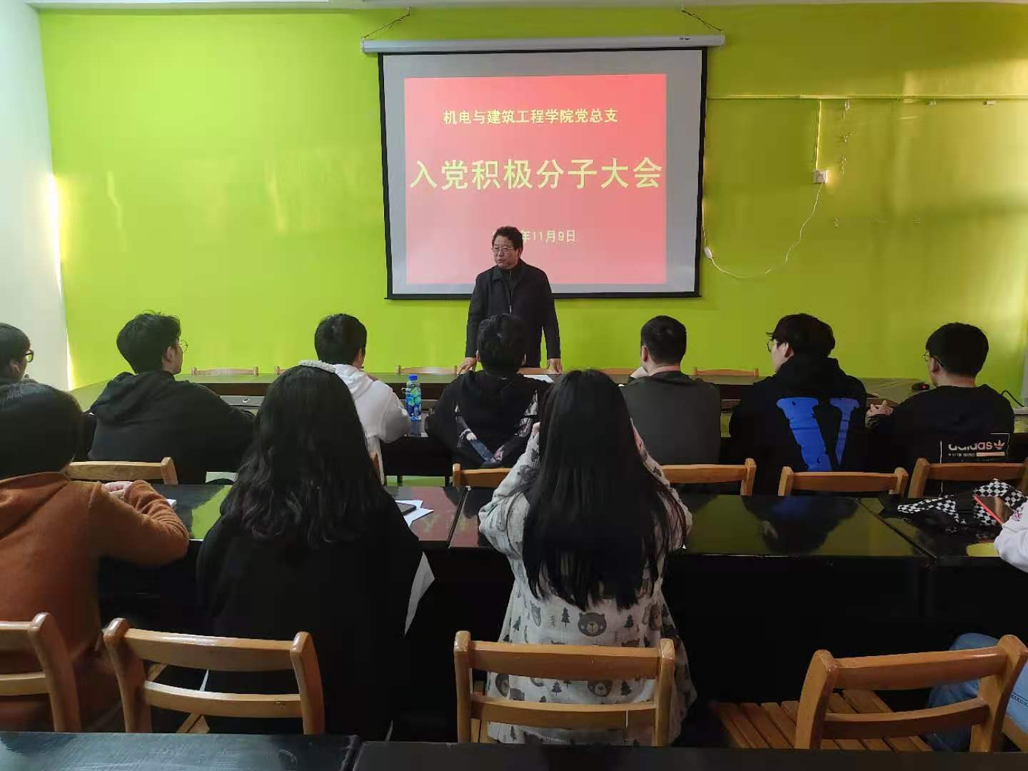 11月9日中午,机电与建筑工程学院党总支组织开展了2020-2021学年第一学期入党积极分子大会,大会由学院党总支书记陈亚立主持,21名入党积极分子参加。