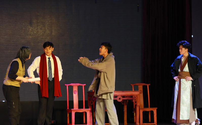 演出结束后,震旦职业学院党委副书记夏臻、副校长乔刚等领导分别讲话。领导们首先祝贺毕业大戏演出成功,勉励同学们再接再厉,在未来的工作岗位上做出更大的成绩。师生们深受鼓舞,大家决心不辜负学校领导的期望,更加刻苦努力,在各自的岗位上为震旦争光。最后,领导们登台与演员合影留念。