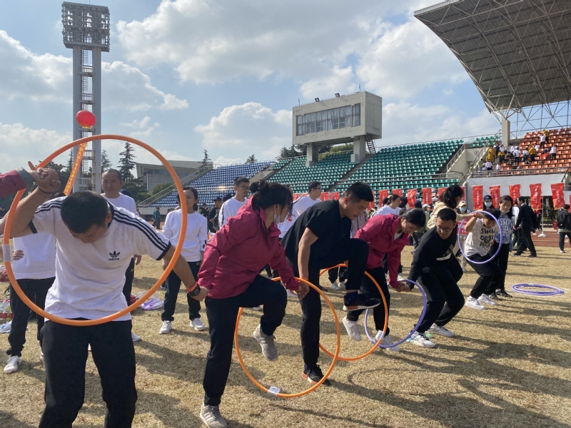 本届拓展活动共设五个集体项目,我校的比赛顺序分别为“力拔山河”、“一鼓作气”、“环环相扣”、“绳舞飞扬”、“陆地冰壶”。经过一周的紧张练习,我校代表队认真备战、齐心协力、团结协作、沉着应对,在各比赛项目中均取得了较好的成绩。在“力拔山河”活动中王纯玉校长与我校辅导员组成16人团队,心往一处想,劲往一处使,充分展现了震旦人上下同心的精神。在“一鼓作气”中,我校代表队队员突破自我,获得了185个的好成绩,在所有参赛高校中遥遥领先,展现了团队的默契及队员间紧密的合作精神。在完成五个项目的比拼之后,我校因整体表现良好,荣获“三等奖”的好成绩。