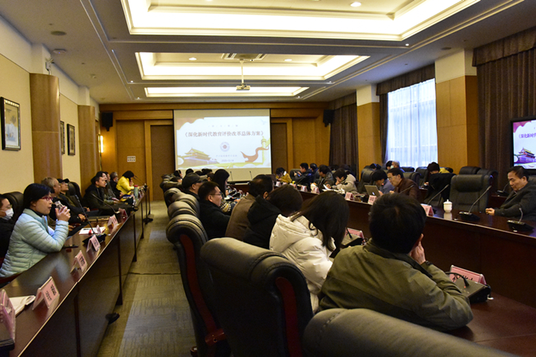 冯伟国校长传达了中共中央、国务院印发《深化新时代教育评价改革总体方案》精神,从《总体方案》总体要求、重点任务、组织实施三个方面介绍了主要内容。《总体方案》坚持以立德树人为主线,以破“五唯”为导向,以五类主体为抓手。全体中层干部要以新时代中国特色社会主义思想为指导,切实学习贯彻《总体方案》精神。各部门、二级学院要认真展开讨论,推进教育评价改革。