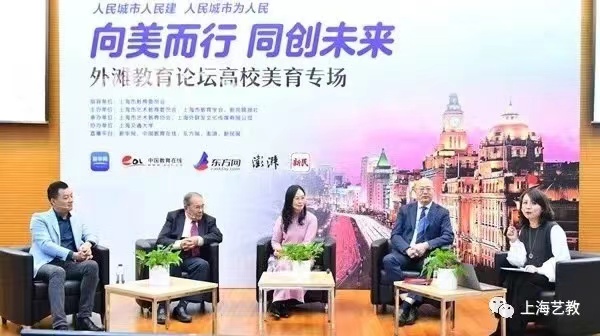 论坛邀请上海音乐学院党委书记徐旭教授,复旦大学上海医学院教授、中山医院原院长、上海美术家协会会员杨秉辉,上海交通大学国家大学生文化素质教育基地副主任、人文学院副院长丁晓萍,教育部全国高校美育教学指导委员会委员、上海大学美术学院副院长金江波教授,围绕加强和改进学校美育,以美育人、以文化人,提高学生审美和人文素养等问题展开讨论。