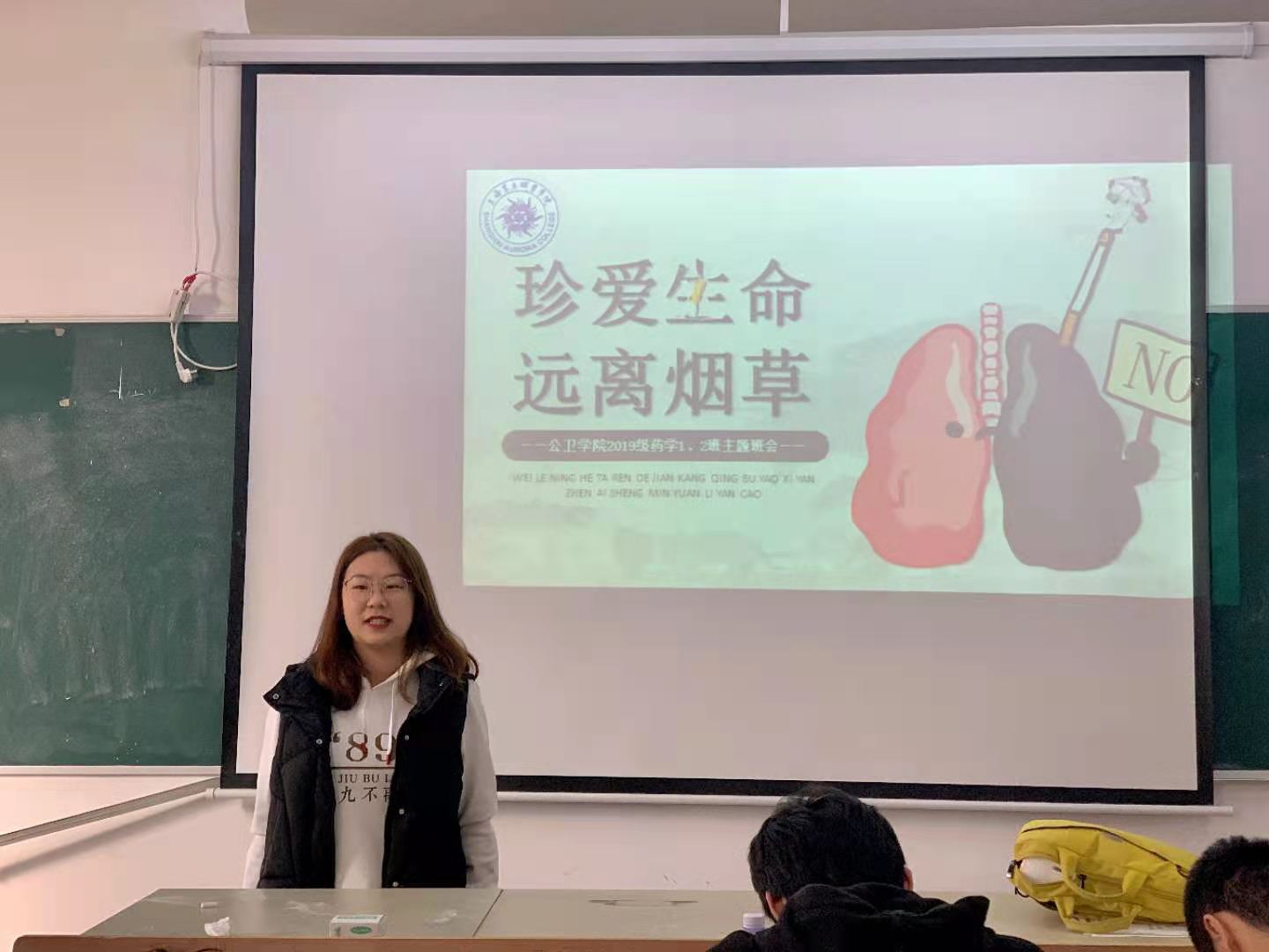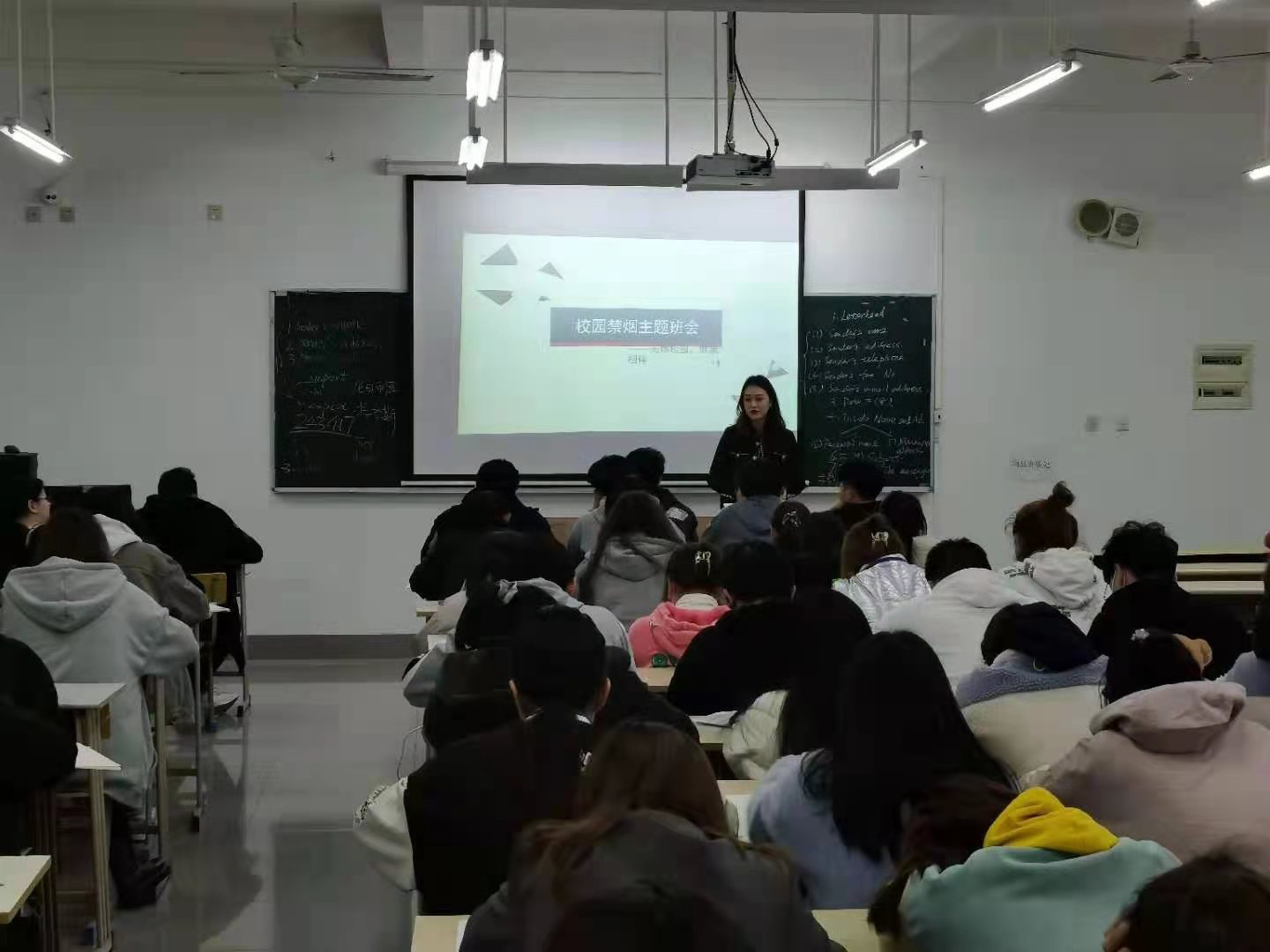 各班级纷纷开展禁烟教育主题班会,辅导员老师向全体同学介绍吸烟的危害性,引导和告诫青年学生要远离烟草,并强调严禁学生在公共场所抽烟,同时传达了学校关于禁烟的有关规定。