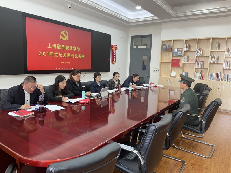 2021年10月21日,2021年度第三批党员发展对象答辩会在党建活动中心举行,党委副书记夏臻、组织部部长黄敏以及各二级学院党总支负责人组成评审小组,对21位拟发展对象一一进行了专题答辩。