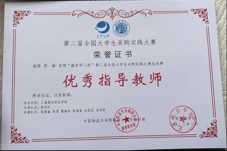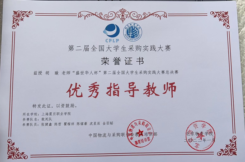 2022年1月6日,中国物流采购与联合会教育培训部主办的“盛世华人杯”第二届全国大学生采购实践大赛决赛落下帷幕。本次比赛共有64所高校113支队伍参加,其中87支本科组,25支高职组。经过方案评审和现场答辩两个环节,最终我校经济管理学院胡璇、周敏老师带领的物流管理等专业的5支参赛队,荣获2个二等奖,3个优秀奖,二位老师也分别荣获“优秀指导教师”。