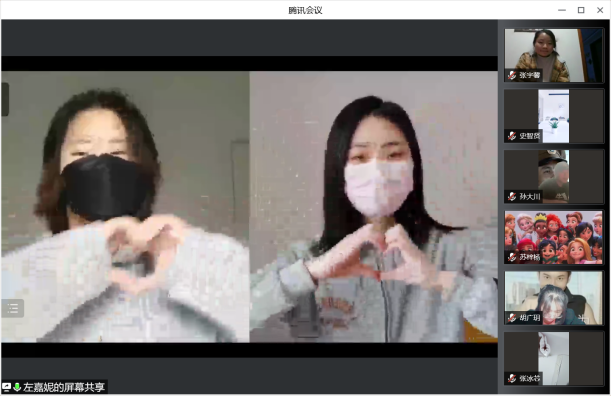 5月3日,李婧老师召开了一场特别的文艺晚会——云端上的晚会。同学精心准备了丰富多彩的节目,彰显着青春力量。有的同学发挥绘画特长,展示手绘“抗疫”主题画;有的同学通过手语表演,表达对抗疫一线工作者的谢意;还有的同学进行了声情并茂的配乐朗诵。最后,李老师别出心裁,特邀一位神秘嘉宾——2017级的优秀学姐,讲述自己的求学之路,作为准研究生的她为同学们答疑解惑,给因疫情居家的同学们加油鼓劲,指引学习方向。