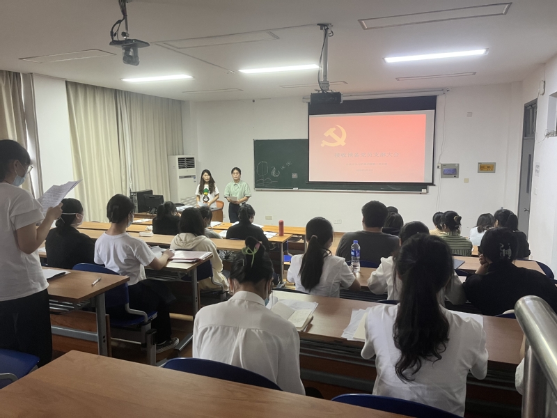 为响应党的号召,培养优秀党员,注入新鲜血液,2022年9月9日上午,公共卫生与护理学院第二党支部在1-413召开了接收预备党员支部大会。本次大会共接收17名同志为中共预备党员,大会由公共卫生与护理学院党总支书记张婧老师主持。