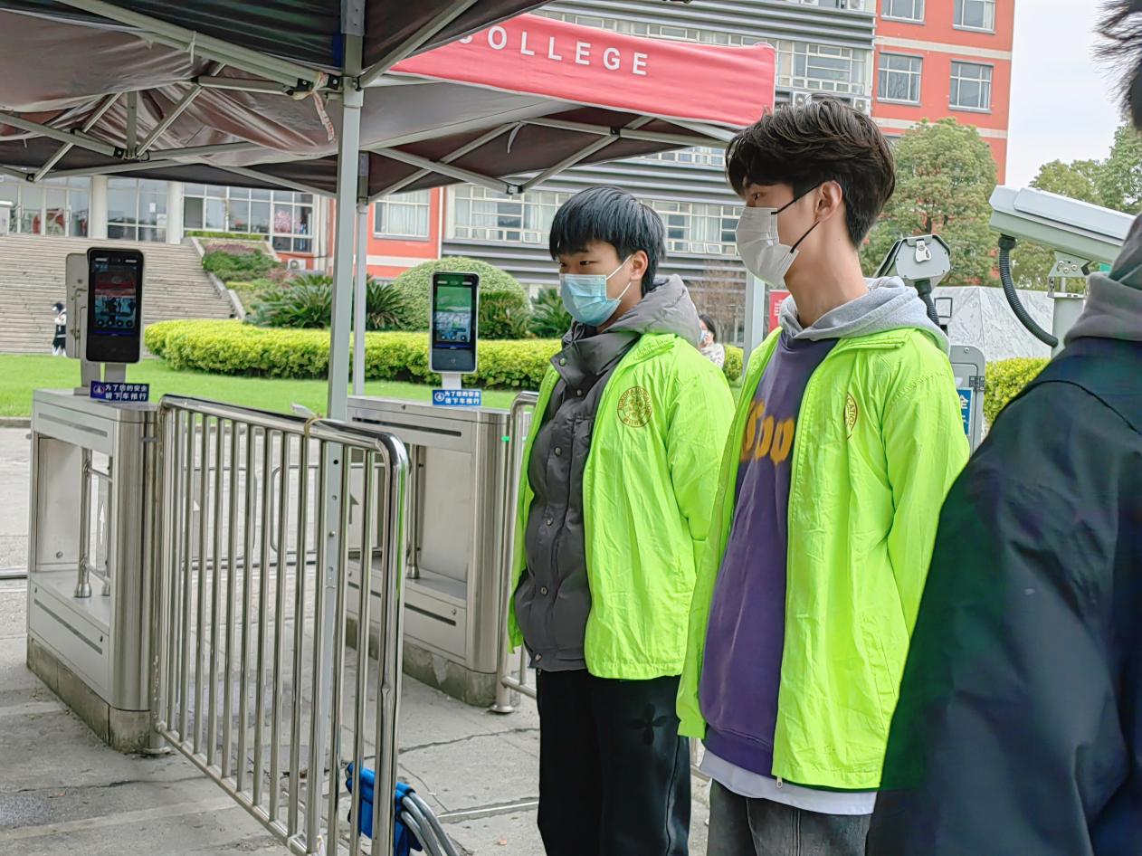 王宇恒和王烨在考场门口查验考生身份