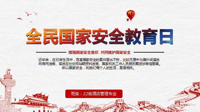 仲思辅导员 22酒店高本贯通班 主题《全民国家安全教育》 4月15日 线上