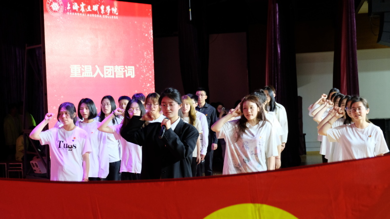 学生会执行主席胡菁菁同学带领团员代表们重温入团誓词。一字一句,铿锵有力,作为党的后备军,将始终以团员的身份要求自己,高举团旗跟党走。