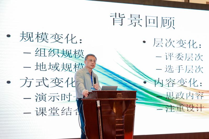 上海外国语大学贤达经济人文学院教授冯奇从连续四年全程参与大赛评委的角度,重点谈了大赛在课程思政方面发挥的引领作用,并提出了七大建议,希望大赛越办越好。