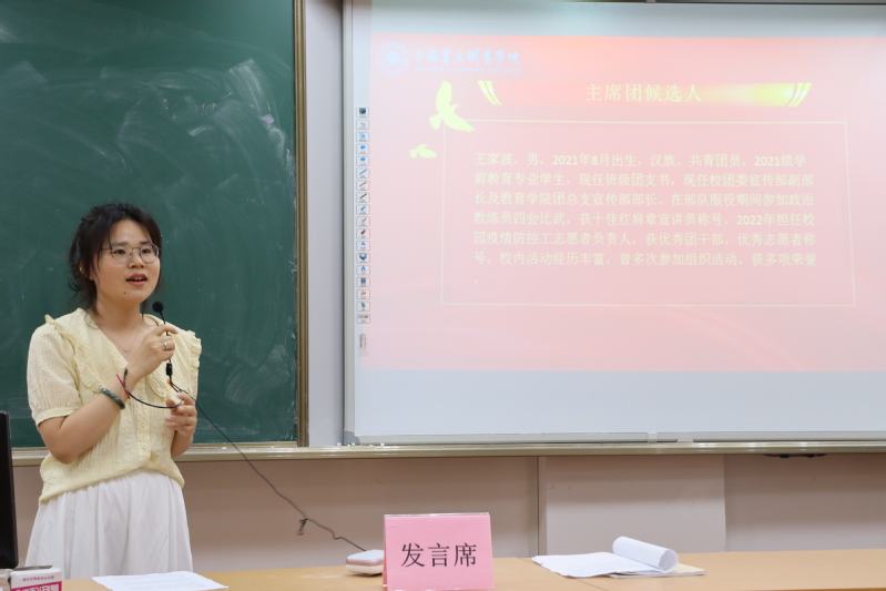 随后,吴蜜蜜老师向各位代表介绍了主席团的候选人,徐萌萌同学介绍了选举规则,经过现场投票,大会选举产生了教育学院第七届学生分会主席团成员以及执行主席及出席第十三次学生代表大会的学生代表。