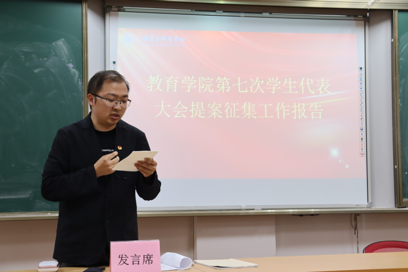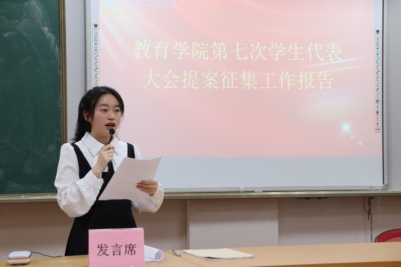之后,教育学院组织部部长许晗同学对教育学院第七次学生代表大会的所征集的提案进行了总结以及陈述。