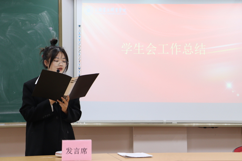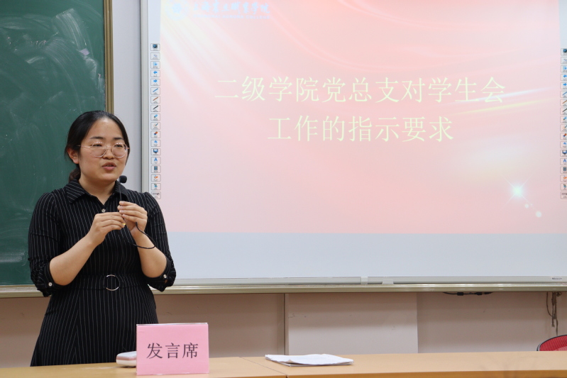 本次大会有五项议程。首先,王芳老师提出了党总支对学生会工作指示要求,一是希望大家能够树立坚定的理想;二是希望大家努力学习专业知识,积极去提升自己;三是希望大家能够作为班级的学生代表,履行自身的职责;四是希望大家能够做好自身应该做的事,积极为同学服务,为学校的发展服务。