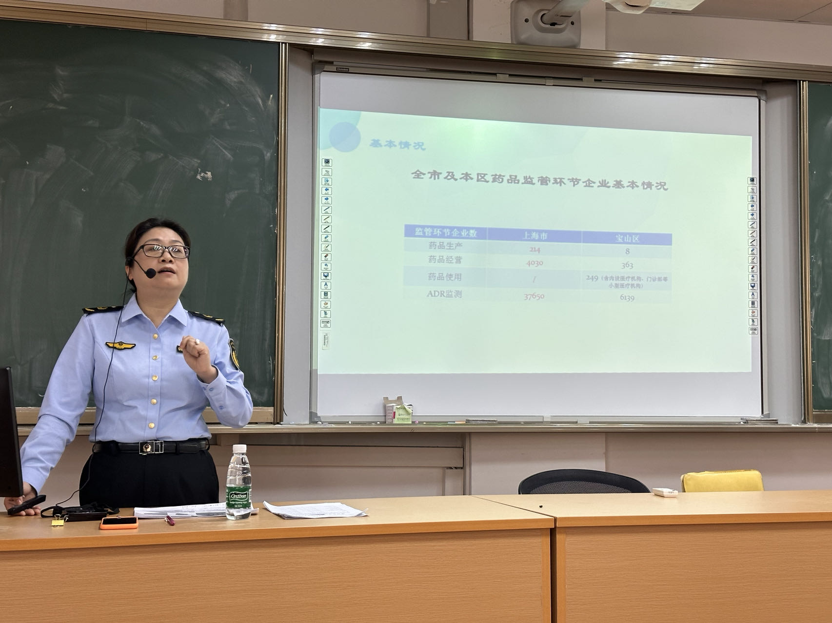 2023年5月22日下午,上海市宝山区药品化妆品监督管理科科长陆逸雁女士为我校2022级药学专业的同学开展了关于药品上市后监管及药品不良反应(ADR)监测的交流宣讲活动。