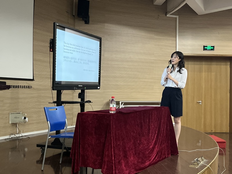 随后,陈赢博士以书中主角蛤蟆先生为例,与现场师生一同探讨了抑郁情绪的成因、应对情绪的心理机制,及情绪与家庭、环境的交互关系,并为如何与身边受到情绪困扰的人相处提供了建议。同时,陈赢博士以书中蛤蟆先生与苍鹭进行心理治疗的过程为例,细致讲解了专业领域中心理治疗师、咨询师如何利用倾听、关系、尊重及专业技巧等为来访者带来改善。