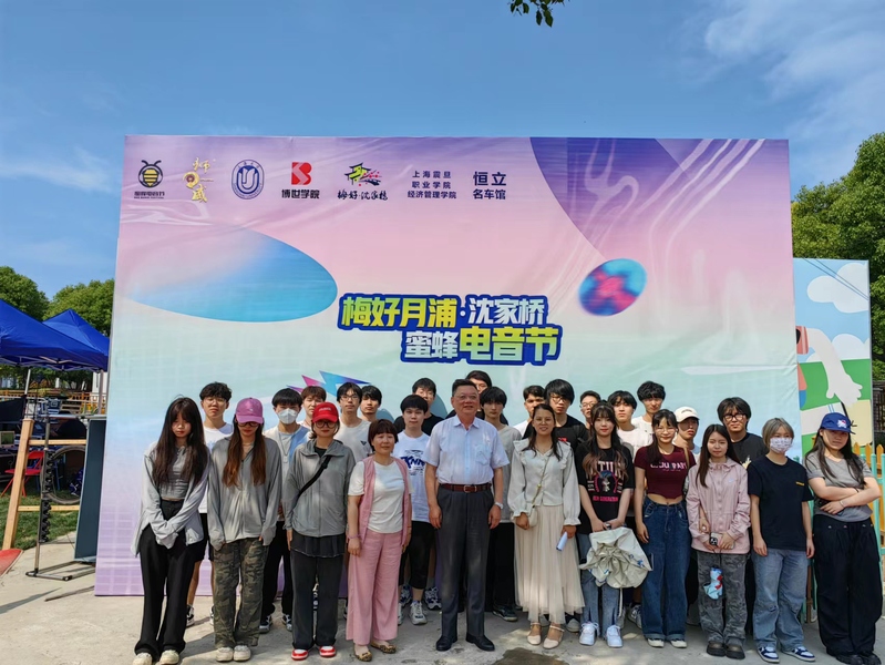 6月3日,经济管理学院2021级电子商务专业28位学生在学院党总支书记沈宇光、辅导员黄梅玲、专任教师胡璇的带领下,参加了上海平霓文化传媒有限公司举办的“月浦·沈家桥狮威蜜蜂电音节”活动。