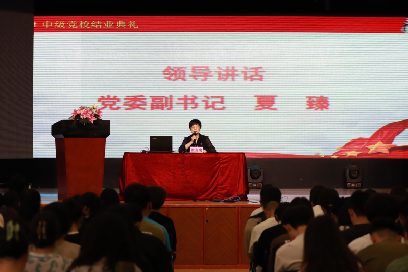 在学校党委的关心和领导下,在各位授课老师的大力支持和配合下,在全体学员的共同努力下,6月14日下午,2022-2023学年第二学期中级党校入党积极分子培训班结业典礼在大礼堂圆满落幕。各二级学院党总支领导拨冗光临,党委副书记夏臻到场并讲话。