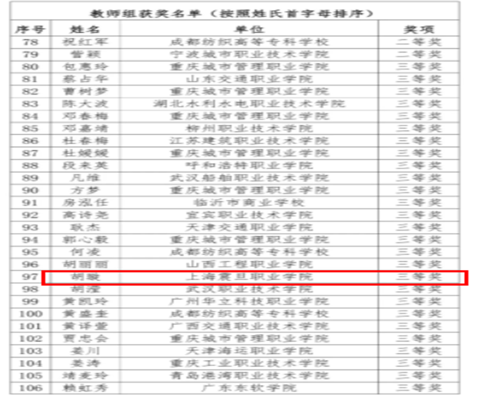 5 | 教师参加2023年上海市高等职业院校教师教学能力比赛(财经商贸)获团队三等奖 | 胡璇、陈洁、李锡成、娄晓梦 |