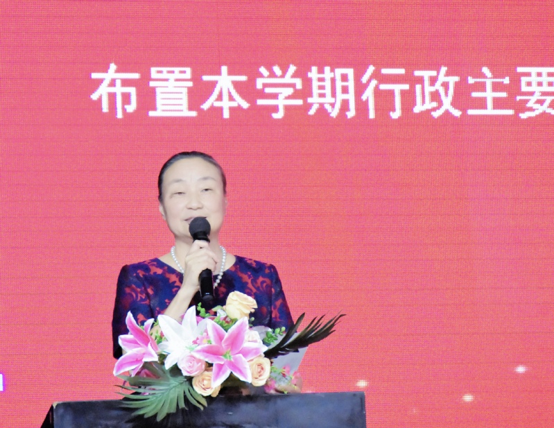 校长布置本学期行政主要工作。她首先代表学校党政领导班子向默默耕耘、辛勤工作的教师们致以节日的问候和崇高的敬意。随后,她指出,学校将继续深入贯彻落实习近平总书记关于职业教育工作的重要指示,按照上海市教委统一部署,推动职业教育与产业发展有机衔接,进一步探索更加适应市场需求的职业院校办学模式。新的学年,学校继续着眼于专业内涵升级、推进校企合作、提高课程教学质量、提升人才培养质量、推进“双师型”教师认定等工作,使震旦发展再上新台阶。