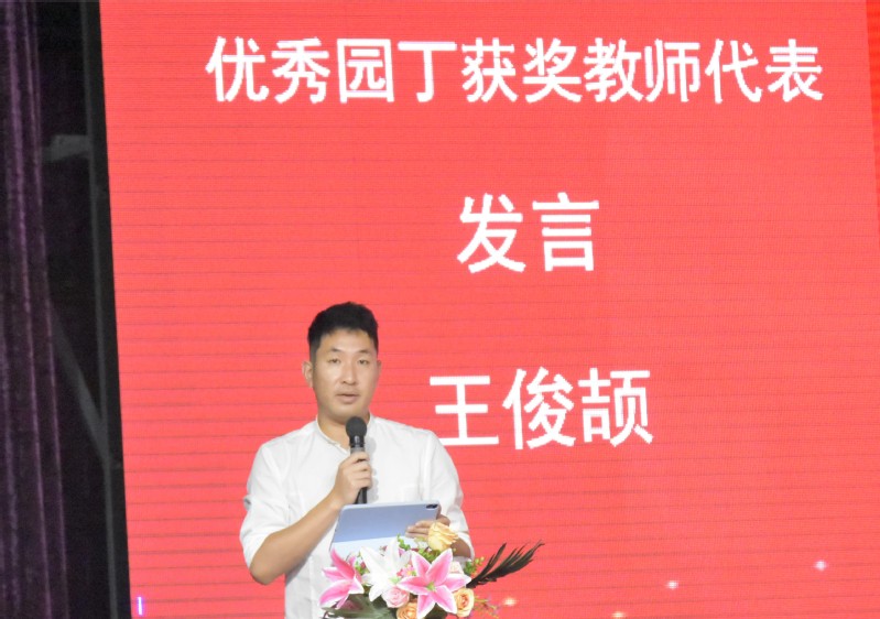 师德标兵获得者任艾丽老师及优秀园丁获得者史娇娇老师、王俊颉老师、佘海舟老师分别代表师德标兵、优秀园丁发言。他们分享了自己在震旦从教的点滴回忆、深刻感悟与体会,并表示将继续以“随风潜入夜,润物细无声”的姿态躬耕教坛。