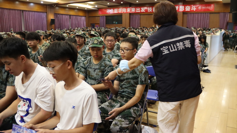 高境镇强制戒毒所的施辰辰警官分析了当前我国的禁毒形势,讲解了吸食毒品的危害,教会同学们如何有效防毒识毒,并通报了相关的案例、数据及中国法律对吸食毒品的处罚。施辰辰警官号召广大学生做文化交流的传播者,做绿色无毒的践行者,做禁毒防艾的宣传者,并现场向同学们发放了禁毒宣传资料1000余份。新生们纷纷表示,将绝不沾染毒品、珍惜青春年华、努力学习知识,用技能报效祖国,为实现中华民族伟大复兴的中国梦贡献力量。