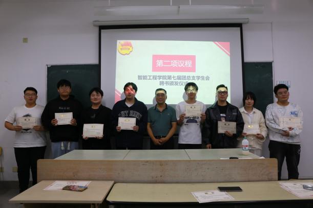 与会老师为学生干部颁发了智能工程学院第七届团总支学生会学生干部聘书,感谢学生干部们过去一年的辛勤付出,鼓励新一届学生干部继往开来,将团学推上一个更高的台阶。