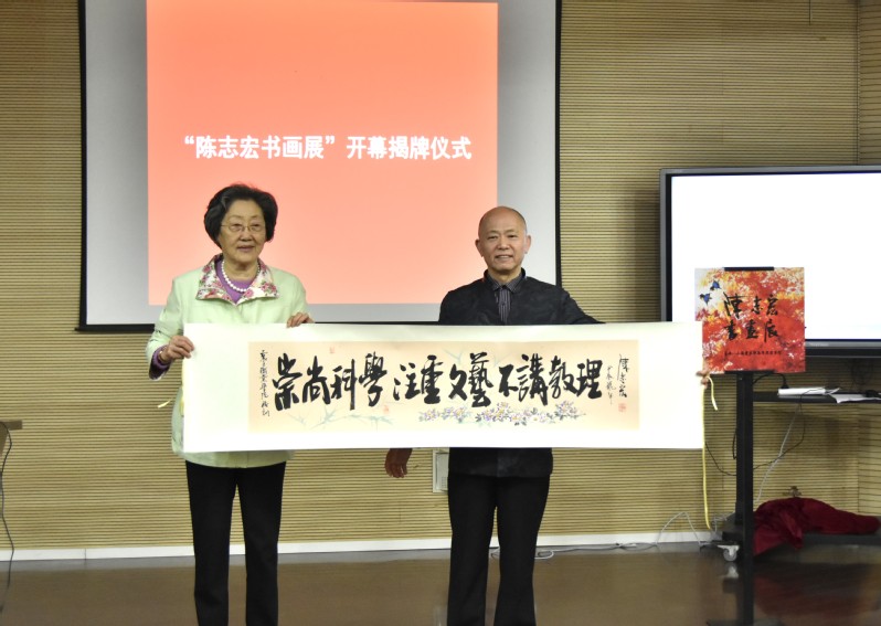 震旦教育集团创始人、震旦教育发展基金会理事长张惠莉与著名海派书画家陈志宏共同为“陈志宏书画展”揭幕。