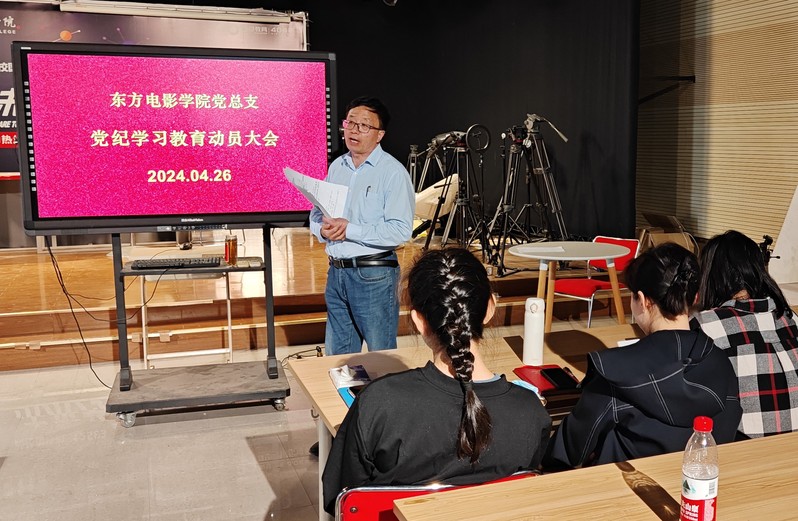 4月26日下午,东方电影学院党总支在演播厅召开党纪学习教育动员会,学院全体师生党员、入党积极分子参会。党总支书记、副院长祝华东主持会议并作动员讲话。