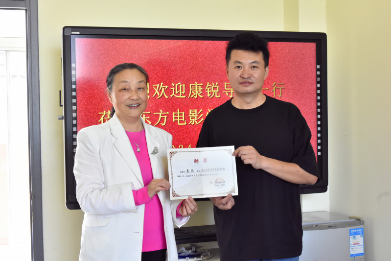 蒋心亚校长向康锐导演颁发了东方电影学院客座教授聘书。