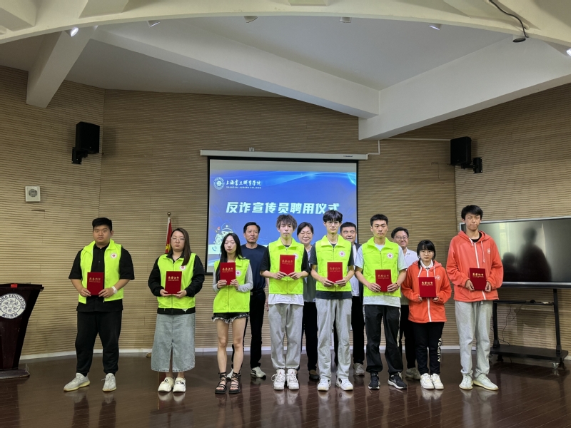 与会领导向宿管工作人员、各宿舍楼楼层长颁发反诈宣传员聘书。