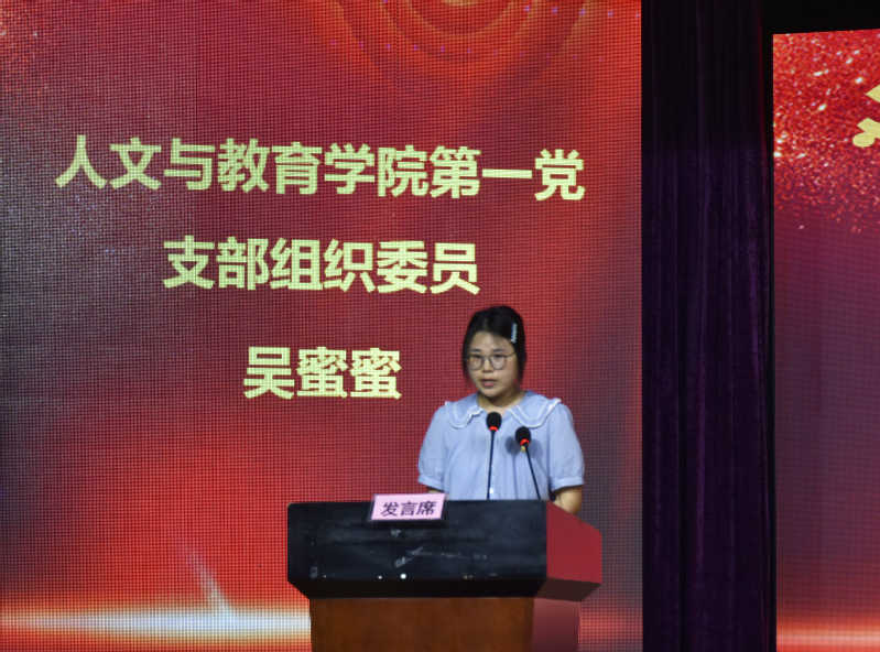 人文与教育学院第一党支部书记吴蜜蜜发言。她介绍了人文与教育学院第一党支部的工作特色,并表示将继续认真贯彻落实党中央的学习要求,积极认真履行各项职责,充分发挥基层党支部的战斗堡垒作用,奋力谱写民办高校基层党组织建设新的篇章。