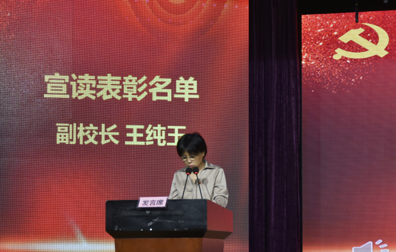 王纯玉副校长宣读《中共星空游戏app安卓免费委员会关于表彰2023-2024学年先进基层党组织、优秀共产党员和优秀党务工作者的决定》,授予人文与教育学院第一党支部、公共卫生与护理学院第二党支部、智能工程学院第二党支部“先进基层党组织”荣誉称号;授予高瞻等13位同志“优秀共产党员”荣誉称号;授予覃倩等8位同志“优秀党务工作者”荣誉称号。