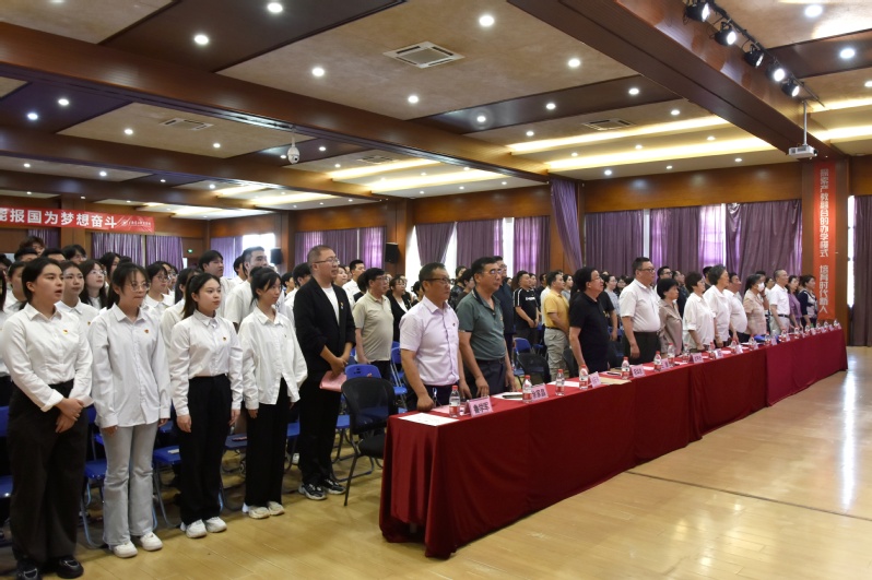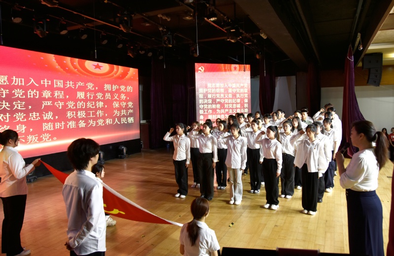 “我志愿加入中国共产党,拥护党的纲领,遵守党的章程......”, 党委副书记黄敏带领预备党员同志进行了入党宣誓。