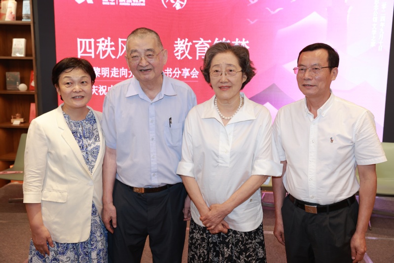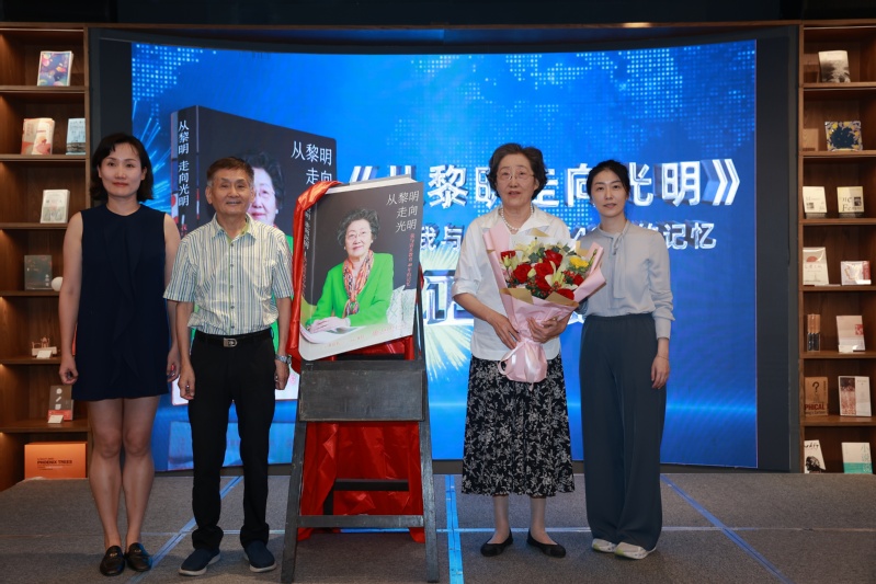 活动最后,震旦教育创始人、震旦教育发展基金会理事长张惠莉,震旦教育集团董事长张沈,著名作家、中国作家协会副主席叶辛,上海交通大学出版社人文分社社长崔霞为《从黎明走向光明》新书揭幕。