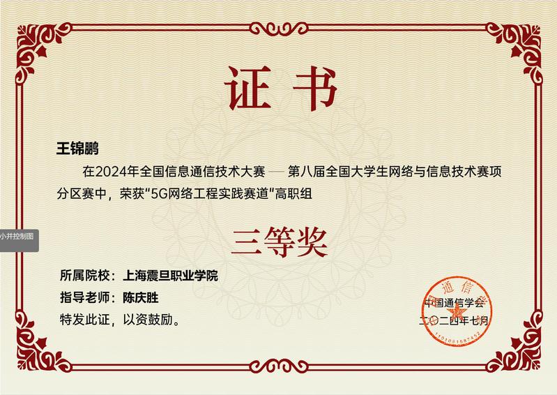 全国大学生网络与信息技术大赛是面向全国高校在校学生的科技类竞赛活动,本次竞赛要求选手在竞赛平台中完成5G网络的拓扑规划、容量计算、设备配置、数据配置、业务开通调试、指标优化及网络故障排查等任务,主要考察选手在不同场景下,5G网络的分析、设计、部署、调试、验收和行业应用等方面的综合实践能力。智能工程学院赛前精心筹备,师生深度钻研5G网络工程的相关技术与应用,持续进行实践并优化,尽显震旦人的卓越风姿。