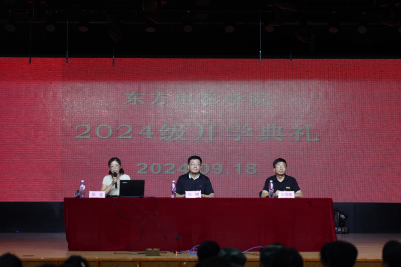 9月18日中午,东方电影学院在学校礼堂举行了2024级新生开学典礼暨入学教育大会。东方电影学院院长郜明,副院长、党总支书记祝华东,党总支副书记邵慧,学院各专业主任、实训室主任、教师代表、全体辅导员以及2024级新生参加了大会。大会由邵慧副书记主持。