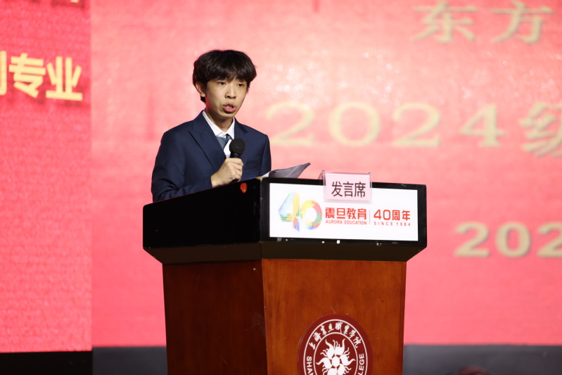 郜明院长在讲话中强调了“规划、参与、自律、跨界、生活”五个关键词。他说大学三年是人生中最宝贵的时光,需要精心规划每一步,鼓励新生们积极参与各类比赛和实践,锤炼专业技能,无论在学习还是生活中,都要严以律己,充分利用学院多专业的优势,拓宽知识视野。最后,郜院长希望新生们能够融入上海这座文化名城,感悟其独特魅力,为自己的文化素养增添底蕴。