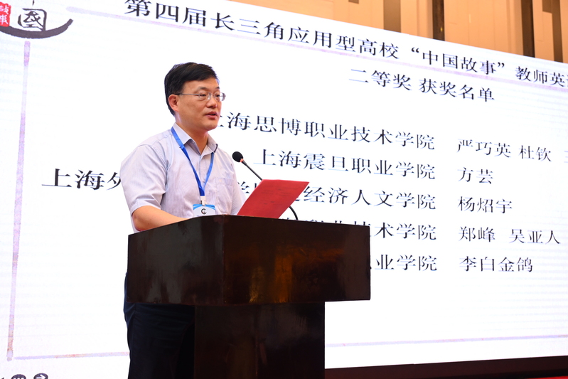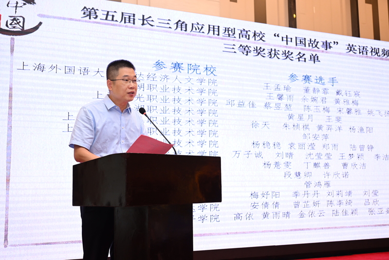 上海外国语大学张健教授、苏州科技大学祝平教授、上海外国语大学贤达经济人文学院冯奇教授、浙江金融职业学院凌来芳教授、安徽国际商务职业学院国际教育学院院长秦慈枫教授、上海市外文学会高职高专外语教学专业委员会主任陈文杰教授等专家宣读了“第四届长三角应用型高校‘中国故事’教师英语微课大赛”获奖名单、“第五届长三角应用型高校‘中国故事’英语视频大赛”获奖名单、优秀指导教师奖和优秀组织奖。