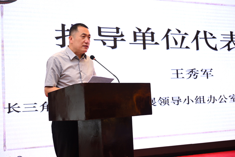 长三角教育一体化发展领导小组办公室总秘书处执行负责人王秀军代表竞赛指导单位发言。他指出,今年是新中国成立75周年,全党上下深入学习贯彻党的二十届三中全会精神,我们将紧扣“一体化”和“高质量”两个关键词,进一步推动长三角一体化发展走深走实。用英语讲“中国故事”是对课程思政的重大实践和探索,对培养学生的家国情怀具有重要意义。“中国故事”英语联校联赛及展演等活动的举办,为长三角应用型高校师生共同搭建了一个提升英语语言技能、增强跨文化意识、弘扬民族优秀文化的平台,对加快实现长三角地区高等教育更高质量协同发展起到了推动作用。