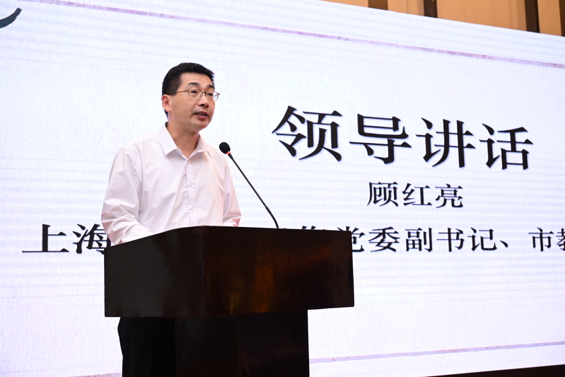 上海市教卫工作党委副书记、市教委副主任顾红亮讲话。顾书记在讲话中强调,当前上海教育系统正在深入贯彻落实习近平总书记在全国教育大会上的重要讲话精神,高等院校,特别是职业院校和民办高校,要聚焦立德树人,着力发挥思政课和课程思政示范课程、示范团队的引领辐射作用,探索举办更多类似英语联赛这样的师生喜闻乐见的课程思政活动,不断提高育人成效;要着力推进产教融合,促进师资共享、平台共享、资源共享,在课程教学、实践实习、创新创业等方面开展更高水平的协同协作,推进“长三角教育一体化”高质量发展;要持续发挥英语联赛对于思政教育的促进作用,也要守正创新不断提升比赛内涵,提升大赛的质量和能级,汇聚起磅礴力量支撑教育强国建设,促进中国式现代化建设目标早日实现。在讲话的最后,顾书记宣布第五届长三角“中国故事”教师英语微课大赛、第六届长三角应用型高校“中国故事”英语视频大赛正式启动。