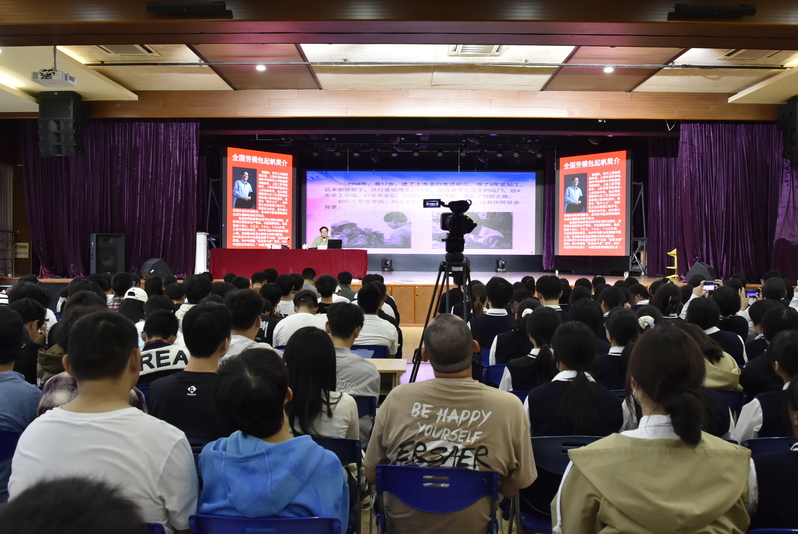 包起帆教授以“如果今天你努力,明天你也会成为劳模”为题,用自己成长的亲身经历,以生动的案例,阐述了“爱国是创新之本、敬业是创新之根、诚信友善是创新之源”的心得体会,鼓励同学们树立坚定的信心和正确的价值观、成才观、职业观;谆谆告诫同学们:创新不易,苦海行舟才会前行;创新果实丰收了,不要忘记每一个参与种树的人;只有把党的事业变成群众自己的事业,我们才能无往而不胜。在深入浅出的报告中,他勉励同学们树立报效祖国、服务人民的理念,抓住人生学习的大好时机,用劳动创造幸福、用知识改变人生、用责任成就事业、用创新铸就辉煌。