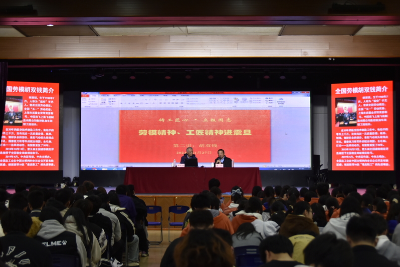会上,劳模胡双钱用质朴的语言讲述了自己成长、成才、成功的历程,解读了什么是工匠精神、工匠精神的传承与创新。他指出,工匠精神就是追求卓越的创造精神、精益求精的品质精神、用户至上的服务精神,就是把平凡普通的工作干出彩、干到极致、干到无可挑剔。工匠精神与创新精神是相互促进、缺一不可的:既有工匠精神又有创新精神,才能无往不胜;没有创新精神的工匠精神,等于因循守旧、注定被时代淘汰;没有工匠精神的创新精神,等于投机取巧,得到了现在而失去了未来。最后,他语重心长地告诫同学们,“一勤天下无难事”,成绩需要时间的积累,实干才能梦想成真。三百六十行,行行出状元,做任何事都要用心、要有责任心,带着爱去工作、带着思考做事情,通过时间磨砺、精神磨砺和技能磨砺,我们每个人都能成为新时代的模范和工匠。